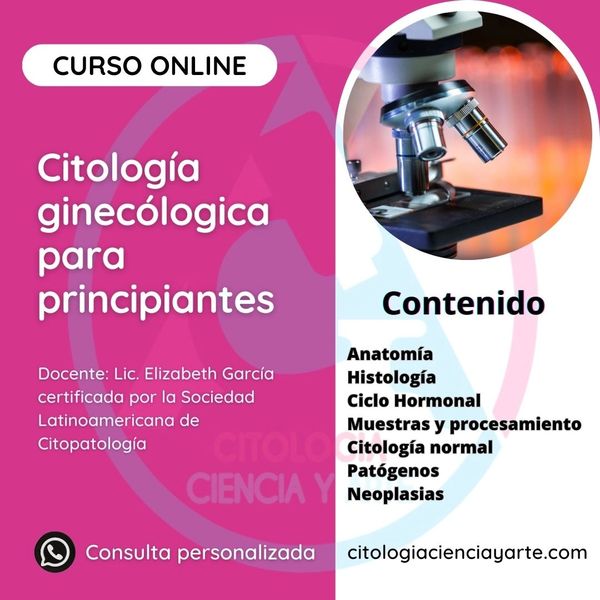 Incluye: clases pregrabadas, material en PDF para lectura, sistema Bethesda para el reporte de citología cervicovaginal en PDF y asesoría personalizada vía Whatsapp.